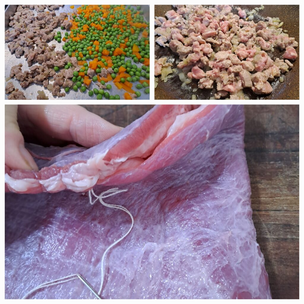 Prima di tutto serve cucire la carne, lasciando una parte aperta.