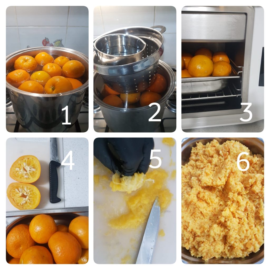 Per prima cosa lavate bene le arance, eliminando ogni residuo dalla buccia, poi con uno stuzzicadenti bucatele molte volte. Quindi lasciatele a bagno per un paio di giorni e cambiate la loro acqua più volte.